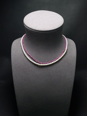 C36239163 Pearl necklace with non-natural/non-gold gemstones, total weight approx. 13.3g, stone size approx. 3.8mm
