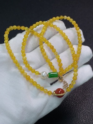 C36272316 Amber and Beeswax Bead Strand with Non-Natural Accent Stones, Non-Gold, Total Weight Approx. 6.77g, Size About 4.1mm