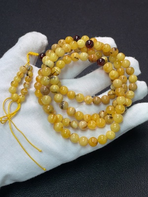 C36321611 Amber Beeswax Bead Necklace with Other Mineral Components, Total Weight Approximately 53.07g, Sell as a Lot