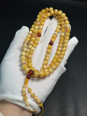 C36274092 Amber Beeswax Bead Strand with Partial Visible Repairs, Total Weight Approximately 29.8g, Size About 7.3mm