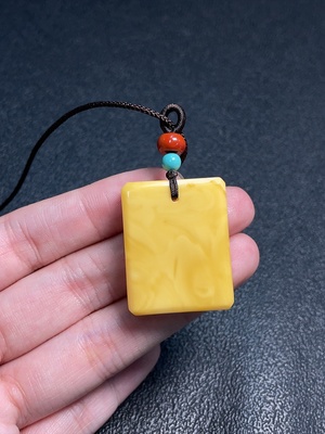 C37434991 Amber Beeswax Pendant with Southern Red Agate, Accent Stones Considered as Turquoise, Total Weight Approximately 7.89g Including Rope