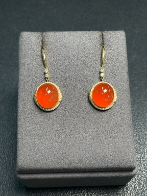 C36228077 South Red Agate Earrings 18K Gold with Diamond Accents (Main Body Only) Total Weight Approx. 5.61g