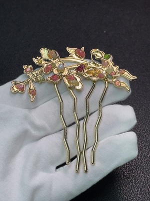 C36241378 Tourmaline Hairpin (Visible Organic Matter, Consider Non-Natural Accent Stones, Non-Gold, Total Weight Approx. 15.47g)