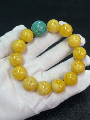 C37448527 Amber Beeswax Bracelet, color origin undetermined, total weight approx. 11.1g, size approx. 10.1mm