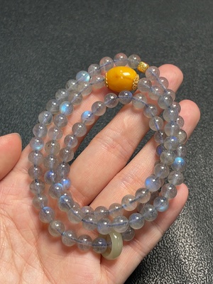 C37418076 Amber Beeswax Bracelet with Non-Natural Accent Stones, Total Weight Approx. 40.13g, Size About 16.2mm