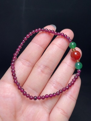C30448658 Garnet Bracelet with Non-Natural Accent Stones, Total Weight Approx. 4.8g, Stone Size Around 3.1mm
