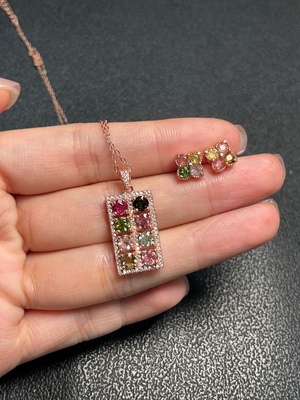 C36302010 Tourmaline Earrings + Necklace Non-Gold Total Weight Approx. 4.91g Sell as a Lot