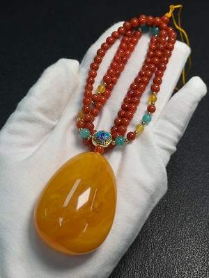 C34992515 Amber honey wax pendant, total weight about 14.11g