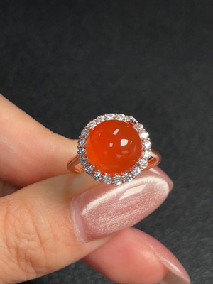C30511999 South Red Agate Inlaid Ring Non-Gold Setting Adjustable Size Total Weight Approx. 3.82g