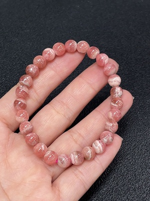 C36233135 Rhodochrosite bead bracelet with visible organic matter, total weight approx. 17.38g, size about 6.8mm (filled)