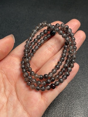 C36272391 Tourmaline bead strand containing other mineral components with visible organic matter, total weight approximately 9.5g, size about 2.7mm
