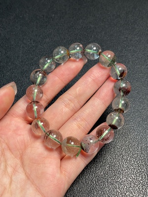 C35183802 Tourmaline Bracelet with Visible Organic Matter, Total Weight Approx. 15.43g, Bead Size 7mm, Accent Stones May Be Non-Natural (Including Inclusions)