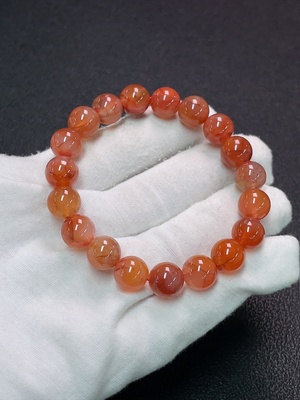 C36273227 South Red Agate Bracelet with Visible Organic Matter, Total Weight Approximately 27.02g, Bead Size About 10.1mm