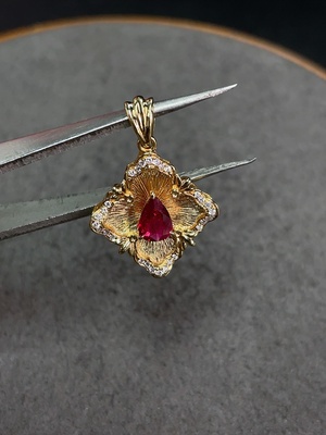 C37384915 18K Ruby Pendant with Diamond Accents, Total Weight Approx. 3.26g