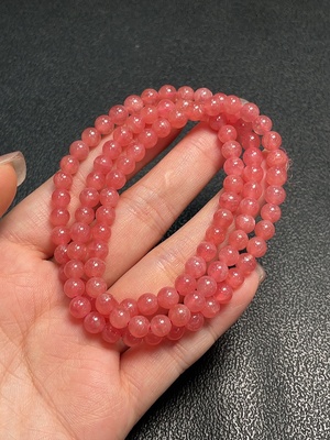C36243301 Rhodochrosite Bead Strand with Visible Organic Matter, Total Weight Approx. 33.43g, Size About 5.6mm