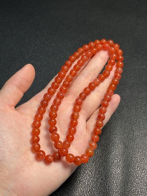 C38502663 South Red Agate Bead Necklace with Visible Organic Matter, Total Weight Approx. 42.68g, Bead Size About 7.2mm