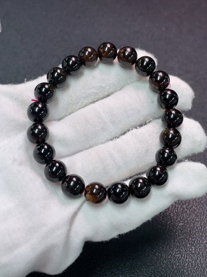 C35182864 Tourmaline Bracelet with Other Mineral Components, Visible Organic Matter, Total Weight Approximately 34.19g, Size About 9.9mm
