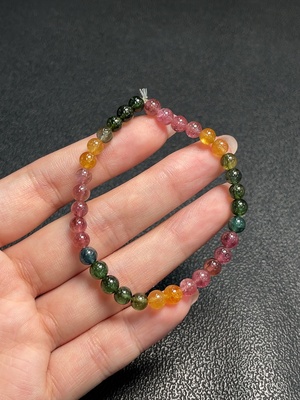 C32783983 Tourmaline Bracelet with Other Mineral Components and Visible Organic Matter, Total Weight Approx. 7.31g, Bead Size Around 5.2mm