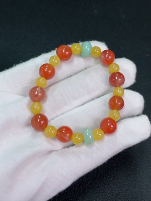 C38485195 South Red Agate Bracelet with Jadeite and Yellow Stone (Possibly Non-Natural), Total Weight Approx. 17.2g, Size Around 9.1mm