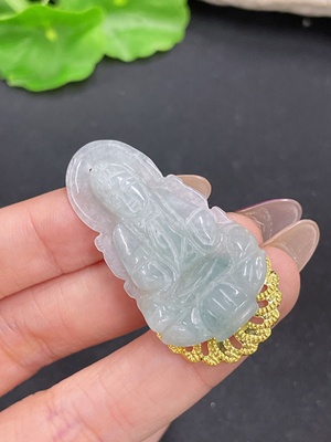 F39563983 Jadeite Guanyin inlay pendant 18K gold non-diamond (with glue at the bottom) total weight about 1.88g