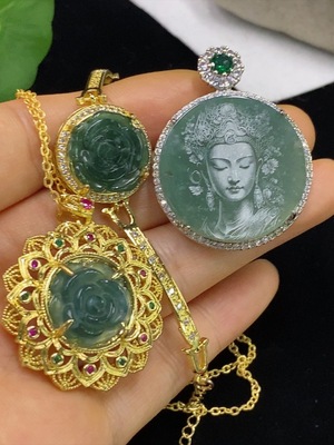 F35094976 Jadeite Guanyin Inlaid Pendant/Flourishing Prosperity Inlaid (Bracelet + Necklace) Non-Gold Inlaid