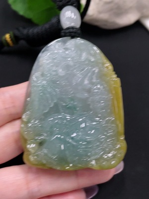 F34981554 Jadeite Guanyin Pendant Total Weight Approx. 83.7g (including rope weight) (yellow part color origin undetermined)