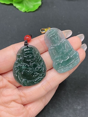 F35105396 Jadeite Pendant Guanyin+Caishen with Non-A Beads Sell as a Lot