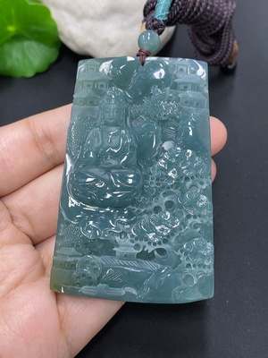 F37444513 Jadeite Landscape Guanyin Pendant, total weight including rope approximately 60.1g