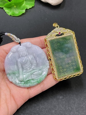 F35105369 Jadeite Pendant Guanyin + Plain Pendant Non-Gold Sell as a Lot