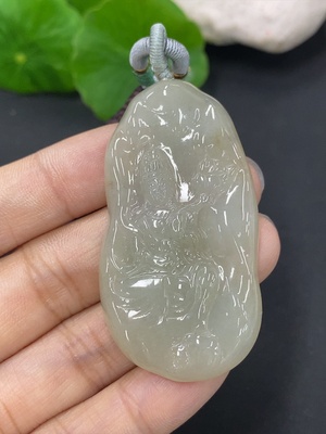 F28198491 Jadeite Rough Guanyin Pendant Total Weight Approx. 14.38g