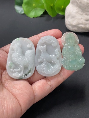 F32821583 JadeitePendant Zodiac Plaque Guanyin with Defect