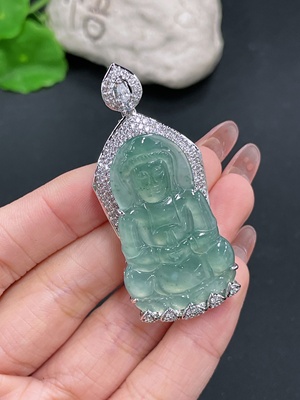 F15663632 Jadeite Guanyin Pendant Total Weight 29.409g