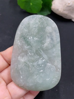 F35161025 Jadeite Rough Uncarved Avalokiteshvara Pendant Total Weight Approx. 13.4g