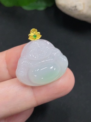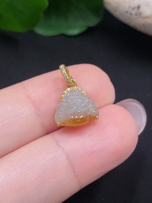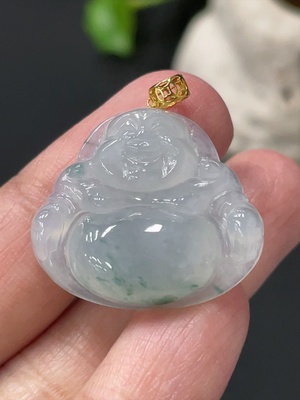 F35106296 Jadeite Buddha Pendant with 18k Gold Clasp, Total Weight Approximately 1.3g