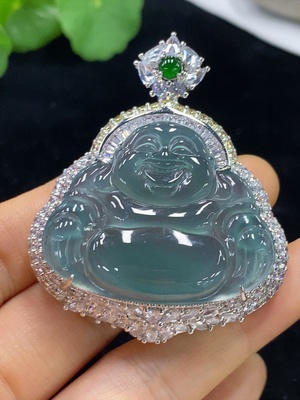 F36244869 Jadeite Buddha Pendant Inlaid Without Gold Total Weight Approx. 3.9g (Inlaid Stones Not Grade A)