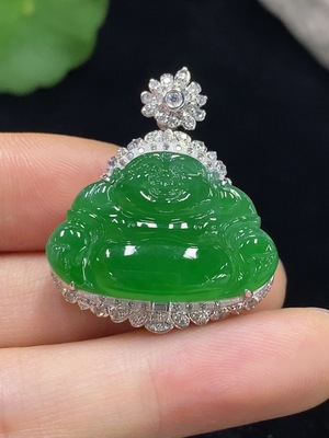 F37395780 Jadeite Buddha Inlaid Pendant 18k Total Weight Approx.14.31g With Diamond Accents (Minimum Side Stones Only)