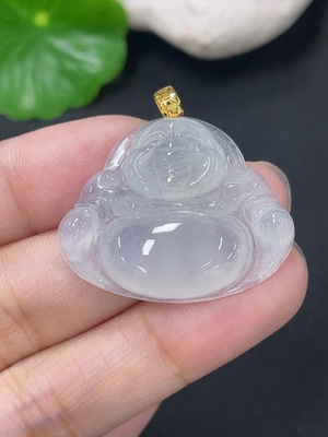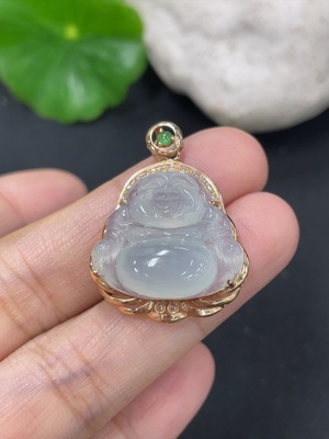 F38534576 Jadeite Buddha Pendant with 18K Gold Clasp, Total Weight Approximately 6.8g