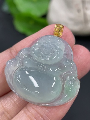 F33850003 Jadeite Baby Buddha Pendant with 18k Gold Setting, Total Weight Approximately 2.37g