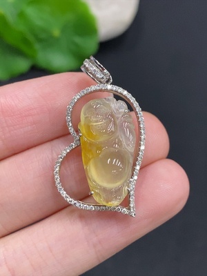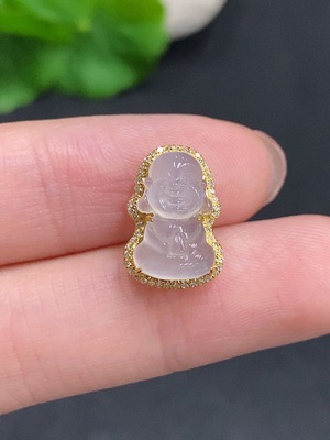 F38510781 Jadeite Baby Buddha Pendant with 18K Gold and Diamond Inlay, Total Weight Approximately 9.2g