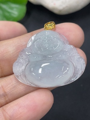 F38509426 Jadeite Buddha Pendant with 18k Gold Clasp, Total Weight Approximately 6.8g
