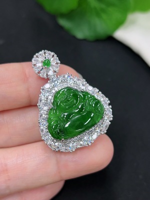 F40688953 Jadeite Buddha Pendant with Inlay Setting, Non-Gold Inlay, Total Weight Approx. 9.49g