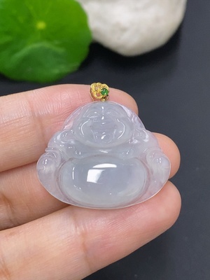 F40684819 Jadeite Buddha Pendant with 18K Gold Clasp and Diamond Accents, Total Weight Approximately 6.4g