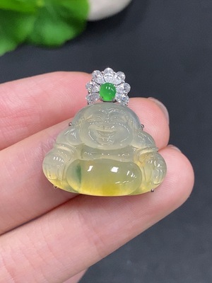 F34024551 Jadeite Pendant Buddha Bezel Set with 18K Gold and Diamonds Total Weight Approx. 6.48g