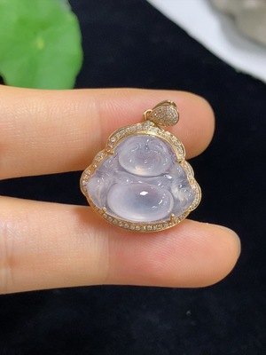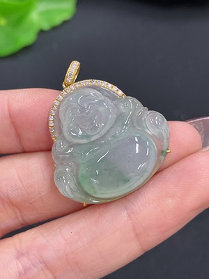 F38517061 Jadeite Buddha Pendant with 18K Gold Clasp, Total Weight Approximately 5.5g, Set with Diamonds