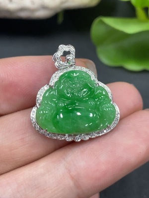 F38517047 Jadeite Buddha Pendant with 18K Gold Clasp, Total Weight Approx. 5.2g, Diamond Accents