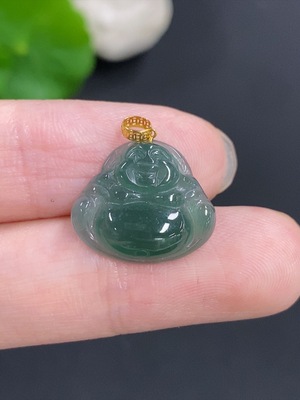 F40685396 Jadeite Buddha Pendant with 18K Gold Clasp, Total Weight Approximately 1.4g