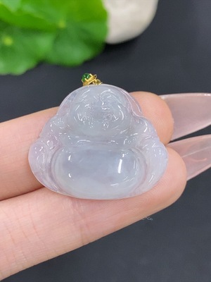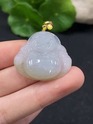 F30543164 Jadeite Buddha Pendant with 18k Gold Clasp, Total Weight Approximately 2.2g