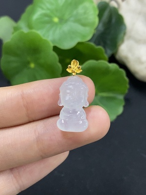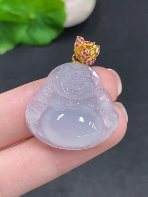 F36314674 Jadeite Baby Buddha Pendant with 18k Gold Clasp, Total Weight Approximately 1.5g