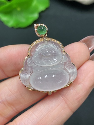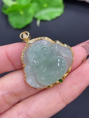 F36235364 Jadeite Buddha Pendant with 18K Gold and Diamond Accents, Total Weight Approx. 7.16g