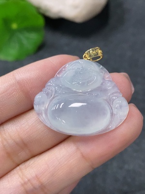 F33850003 Jadeite Baby Buddha Pendant with 18k Gold Setting, Total Weight Approximately 2.37g